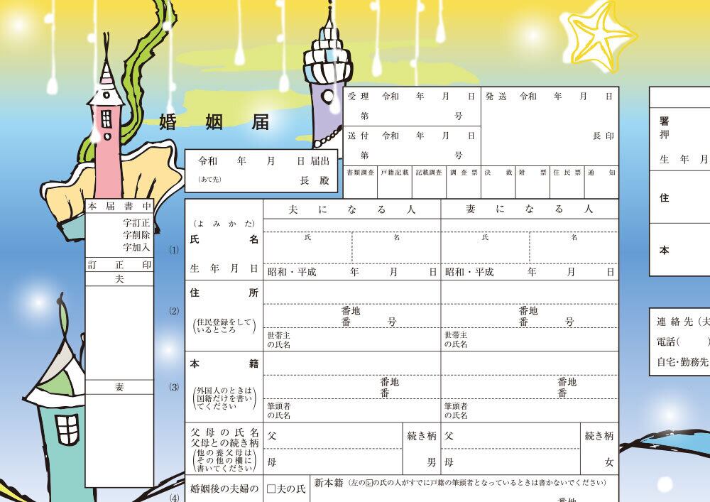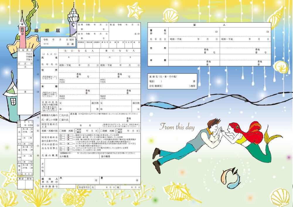 実際に市役所に提出できるハイデザインな婚姻届です。