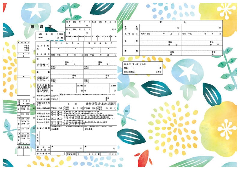 コンビニプリント ハイデザイン婚姻届 「夏の花々」<令和版>