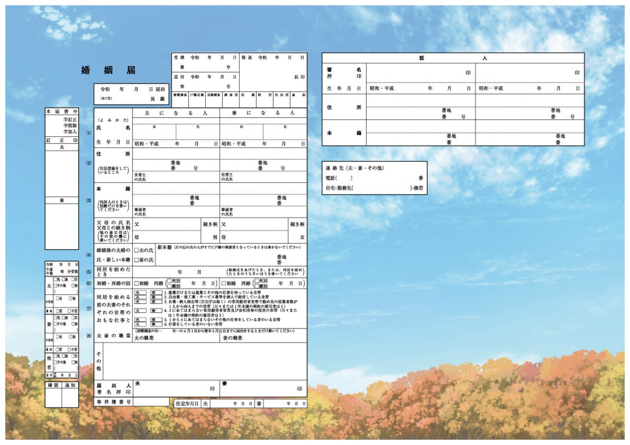 コンビニプリント ハイデザイン婚姻届 「秋空9月」<令和版>