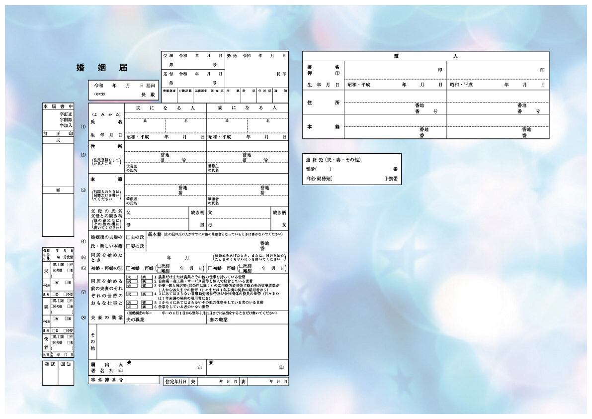 実際に役所に提出できるデザイン婚姻届のコンビニコピー出力販売です。