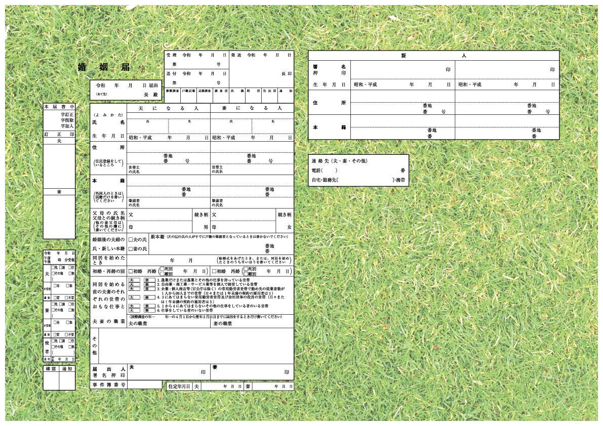 コンビニプリント ハイデザイン婚姻届 「蒼の芝生」<令和版>