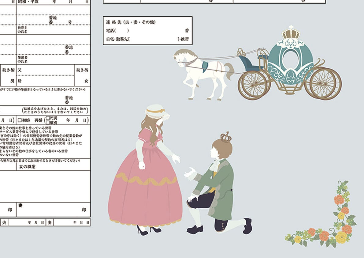 実際に役所に提出できるデザイン婚姻届のコンビニコピー出力販売です。